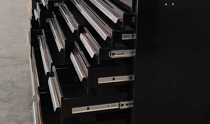 Vaikne liugrööpad: mustal multifunktsionaalsel tööriistakapist on raskeveokite vaiksete libisemisrööpad, sujuva tõmbeoperatsiooni ja tugeva koormuse kandevõimega.